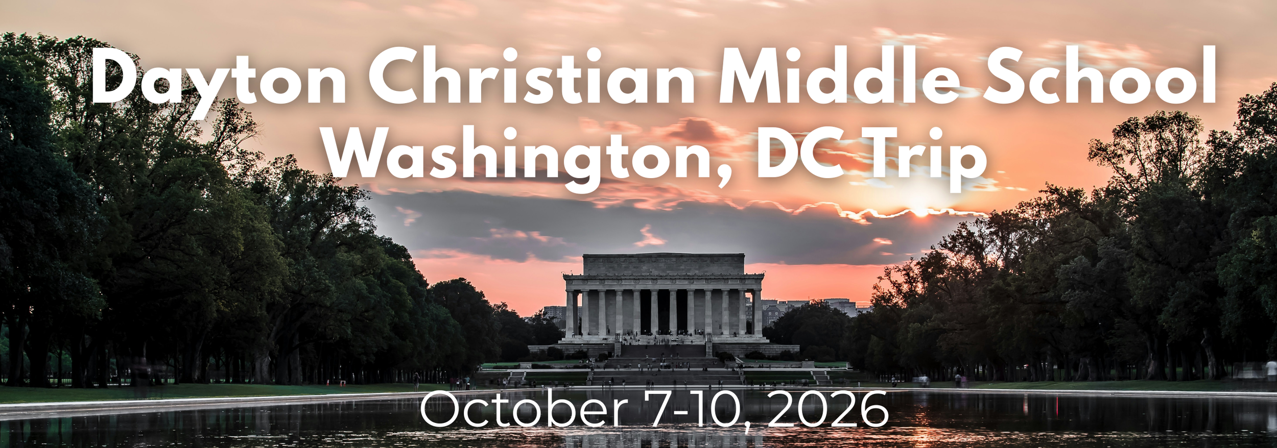 Cash payments can be mailed to 169 Park Drive Xenia, OH 45385 or dropped off at the Dayton Christian Middle School office. Please include a note indicating the traveler name and “DCMS to DC 2026”.